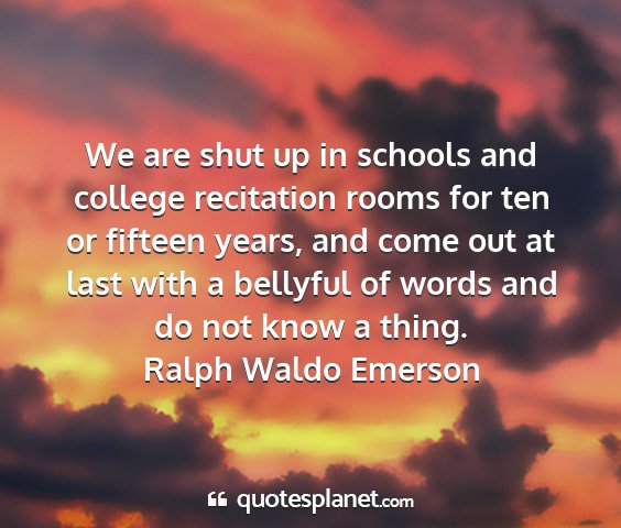 We are shut up in schools and college recitation rooms for ten or fifteen years, and come out at last with a bellyful of words and do not know a thing.Ralph Waldo Emerson