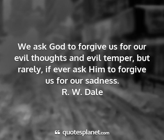 We ask God to forgive us for our evil thoughts and evil temper, but rarely, if ever ask Him to forgive us for our sadness.R. W. Dale