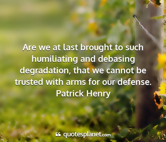 Are we at last brought to such humiliating and debasing degradation, that we cannot be trusted with arms for our defense.Patrick Henry