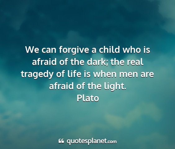 We can forgive a child who is afraid of the dark; the real tragedy of life is when men are afraid of the light.Plato