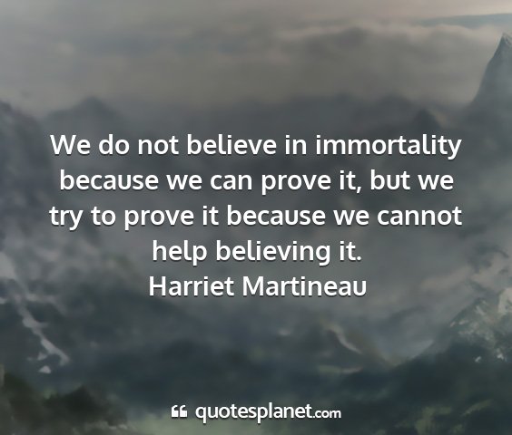 We do not believe in immortality because we can prove it, but we try to prove it because we cannot help believing it.Harriet Martineau
