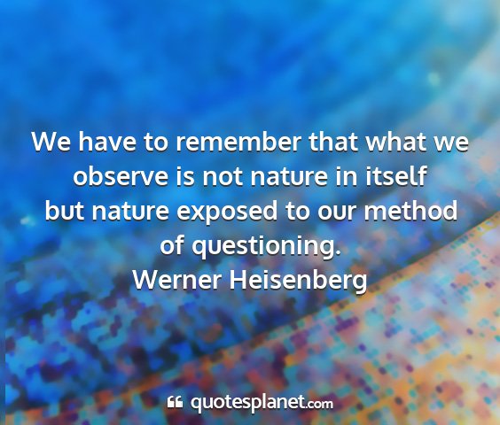 We have to remember that what we observe is not nature in itself but nature exposed to our method of questioning.Werner Heisenberg