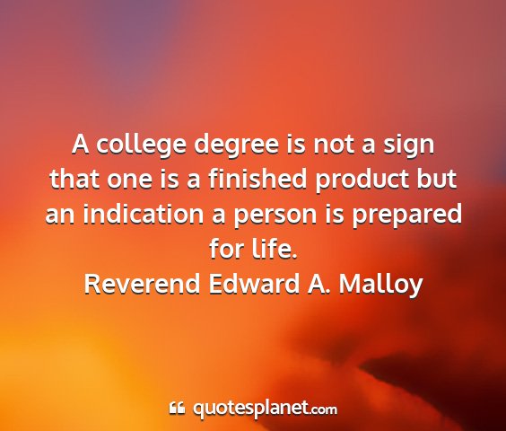 A college degree is not a sign that one is a finished product but an indication a person is prepared for life.Reverend Edward A. Malloy