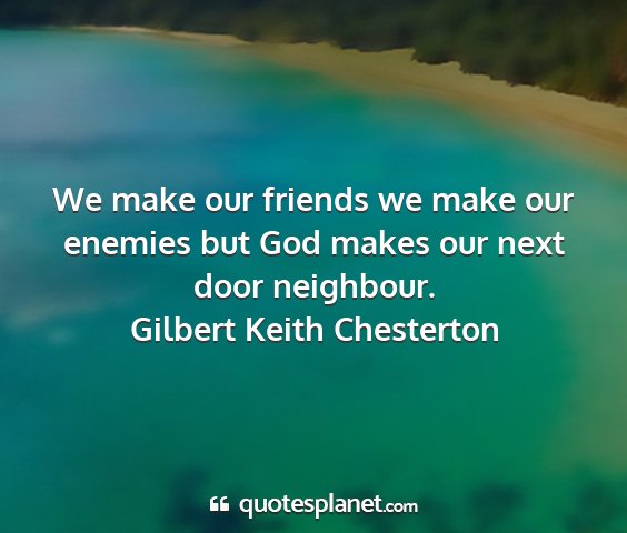 We make our friends we make our enemies but God makes our next door neighbour.Gilbert Keith Chesterton