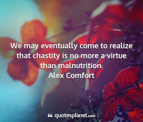 We may eventually come to realize that chastity is no more a virtue than malnutrition.