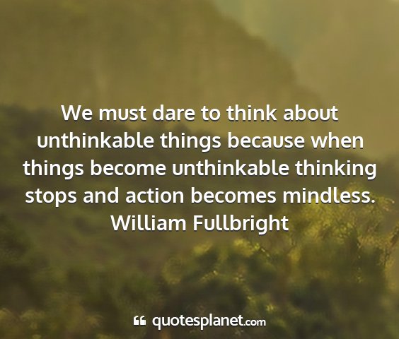 We must dare to think about unthinkable things because when things become unthinkable thinking stops and action becomes mindless.William Fullbright