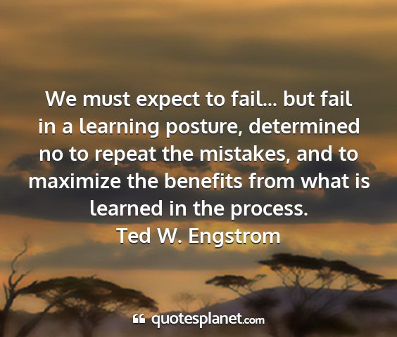 We must expect to fail... but fail in a learning posture, determined no to repeat the mistakes, and to maximize the benefits from what is learned in the process.Ted W. Engstrom