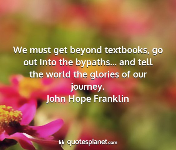 We must get beyond textbooks, go out into the bypaths... and tell the world the glories of our journey.John Hope Franklin
