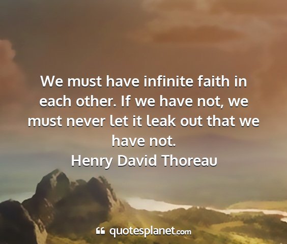 We must have infinite faith in each other. If we have not, we must never let it leak out that we have not.Henry David Thoreau