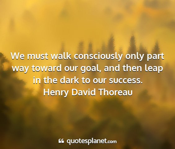 We must walk consciously only part way toward our goal, and then leap in the dark to our success.Henry David Thoreau