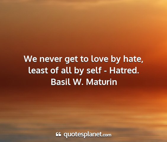 We never get to love by hate, least of all by self - Hatred.