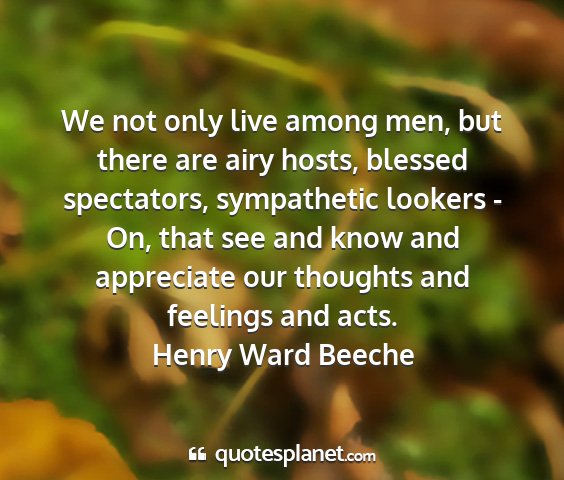 We not only live among men, but there are airy hosts, blessed spectators, sympathetic lookers - On, that see and know and appreciate our thoughts and feelings and acts.Henry Ward Beeche
