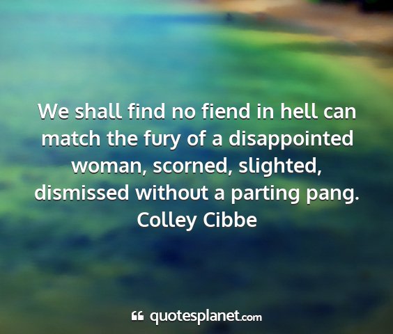 We shall find no fiend in hell can match the fury of a disappointed woman, scorned, slighted, dismissed without a parting pang.Colley Cibbe