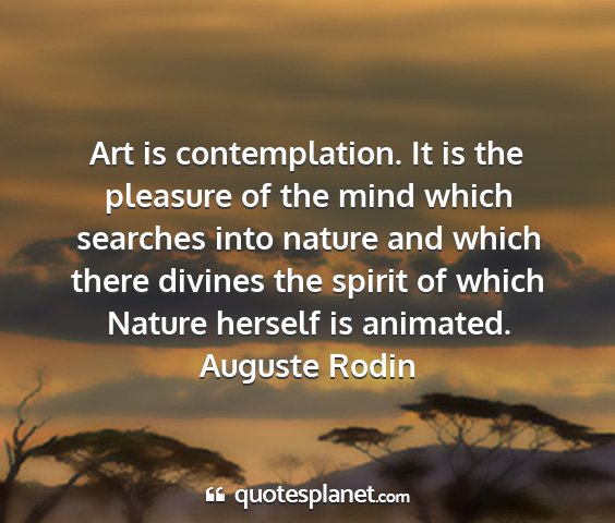 Art is contemplation. It is the pleasure of the mind which searches into nature and which there divines the spirit of which Nature herself is animated.Auguste Rodin