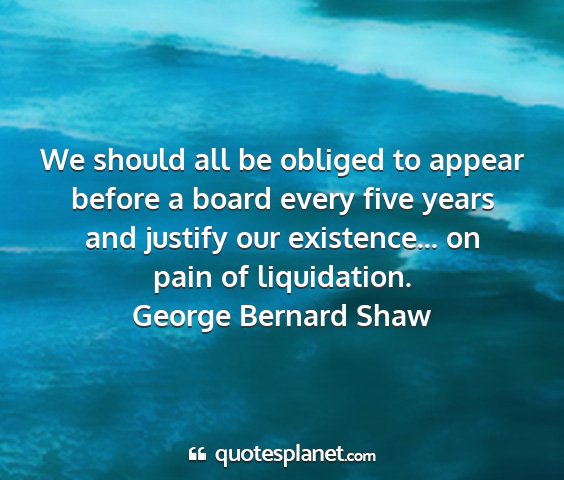We should all be obliged to appear before a board every five years and justify our existence... on pain of liquidation.George Bernard Shaw