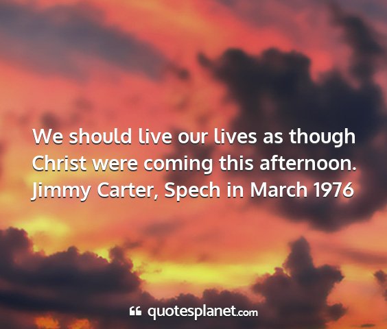We should live our lives as though Christ were coming this afternoon.Jimmy Carter, Spech in March 1976