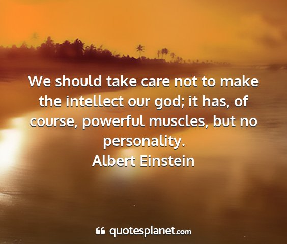 We should take care not to make the intellect our god; it has, of course, powerful muscles, but no personality.Albert Einstein