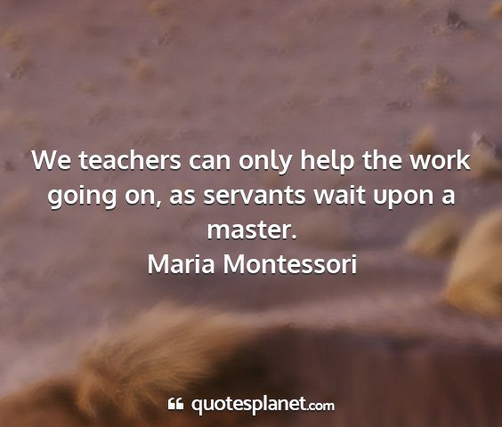 We teachers can only help the work going on, as servants wait upon a master.