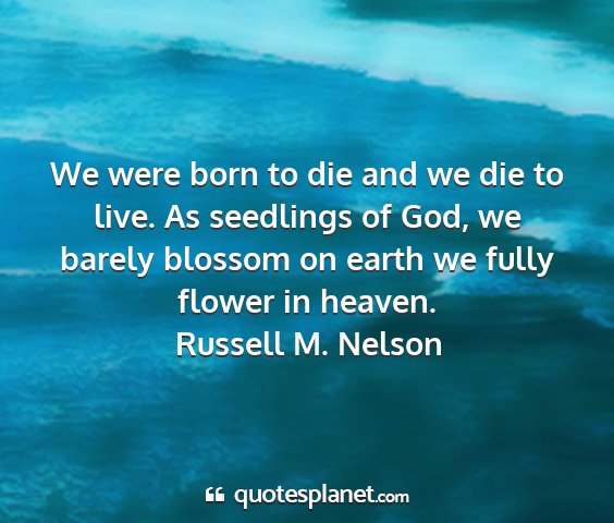 We were born to die and we die to live. As seedlings of God, we barely blossom on earth we fully flower in heaven.Russell M. Nelson