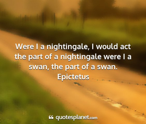 Were I a nightingale, I would act the part of a nightingale were I a swan, the part of a swan.Epictetus