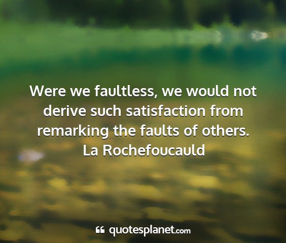 Were we faultless, we would not derive such satisfaction from remarking the faults of others.La Rochefoucauld