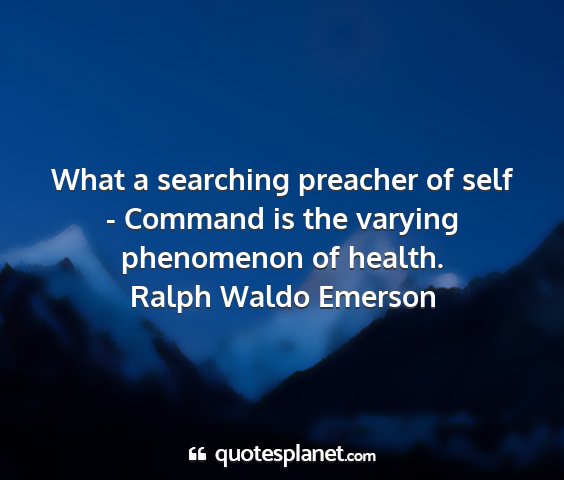 What a searching preacher of self - Command is the varying phenomenon of health.