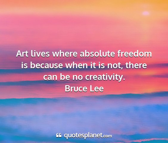 Art lives where absolute freedom is because when it is not, there can be no creativity.