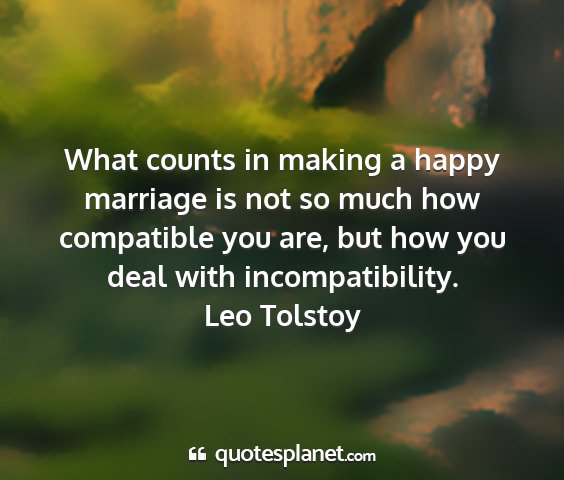 What counts in making a happy marriage is not so much how compatible you are, but how you deal with incompatibility.Leo Tolstoy