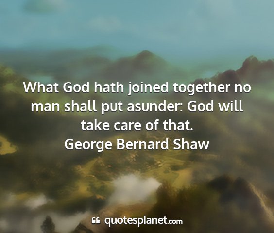 What God hath joined together no man shall put asunder: God will take care of that.George Bernard Shaw