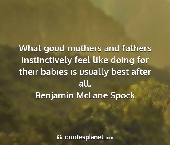 What good mothers and fathers instinctively feel like doing for their babies is usually best after all.Benjamin McLane Spock