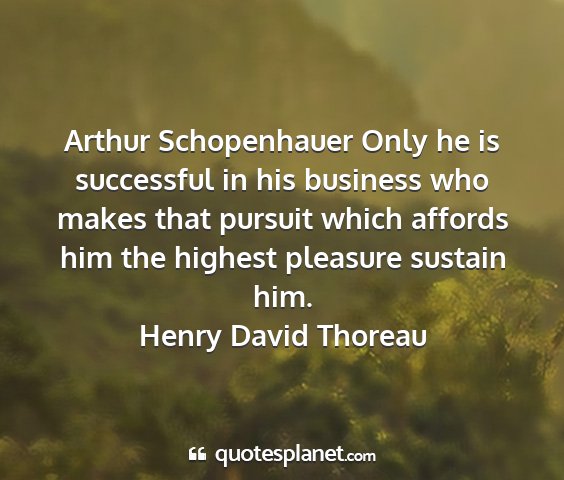 Arthur Schopenhauer Only he is successful in his business who makes that pursuit which affords him the highest pleasure sustain him.Henry David Thoreau