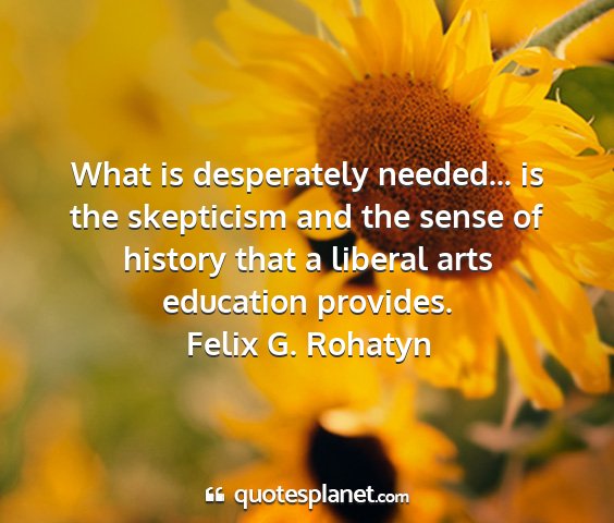 What is desperately needed... is the skepticism and the sense of history that a liberal arts education provides.Felix G. Rohatyn