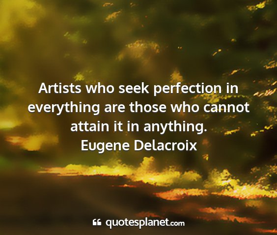 Artists who seek perfection in everything are those who cannot attain it in anything.Eugene Delacroix