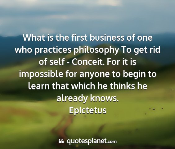 What is the first business of one who practices philosophy To get rid of self - Conceit. For it is impossible for anyone to begin to learn that which he thinks he already knows.Epictetus
