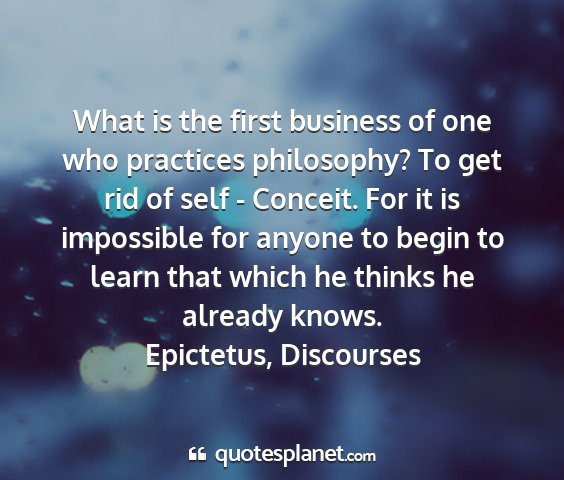 What is the first business of one who practices philosophy? To get rid of self - Conceit. For it is impossible for anyone to begin to learn that which he thinks he already knows.Epictetus, Discourses