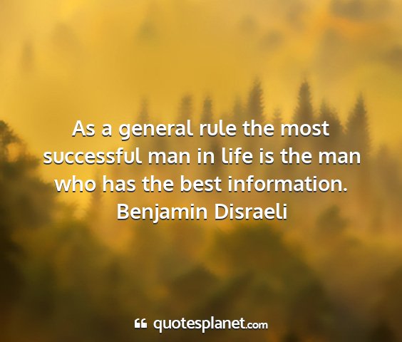 As a general rule the most successful man in life is the man who has the best information.Benjamin Disraeli