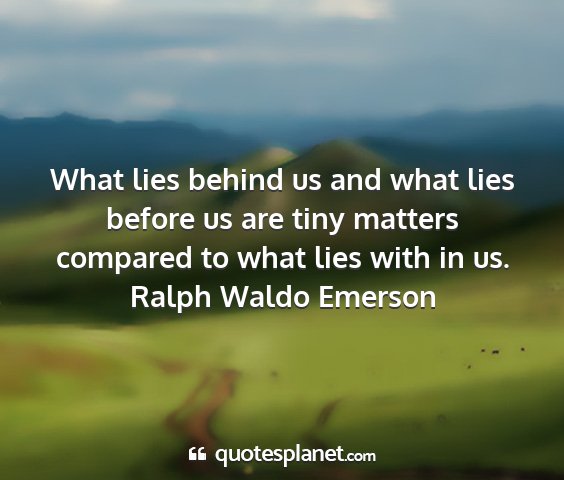 What lies behind us and what lies before us are tiny matters compared to what lies with in us.Ralph Waldo Emerson