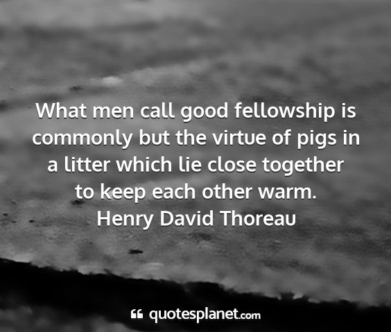 What men call good fellowship is commonly but the virtue of pigs in a litter which lie close together to keep each other warm.Henry David Thoreau