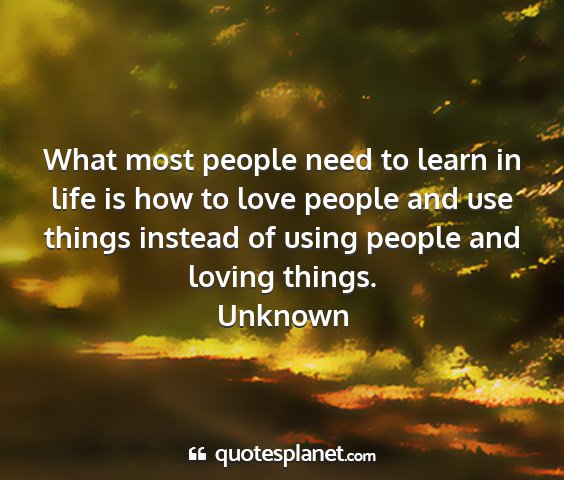 What most people need to learn in life is how to love people and use things instead of using people and loving things.Unknown