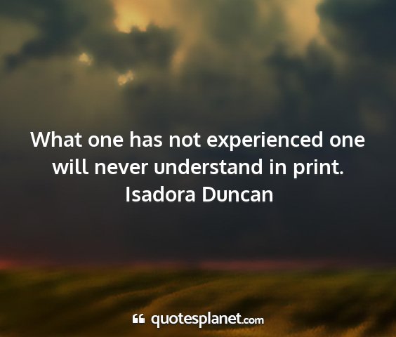 What one has not experienced one will...