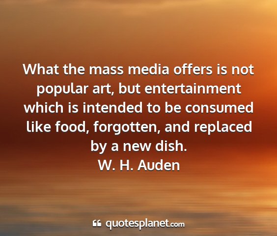 What the mass media offers is not popular art, but entertainment which is intended to be consumed like food, forgotten, and replaced by a new dish.W. H. Auden