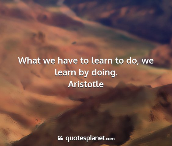 What we have to learn to do, we learn by doing.