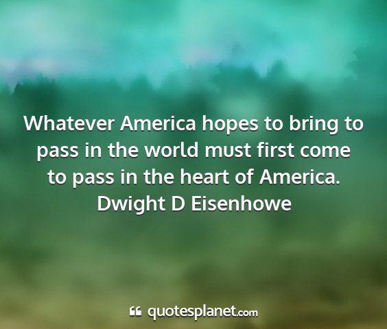 Whatever America hopes to bring to pass in the world must first come to pass in the heart of America.Dwight D Eisenhowe