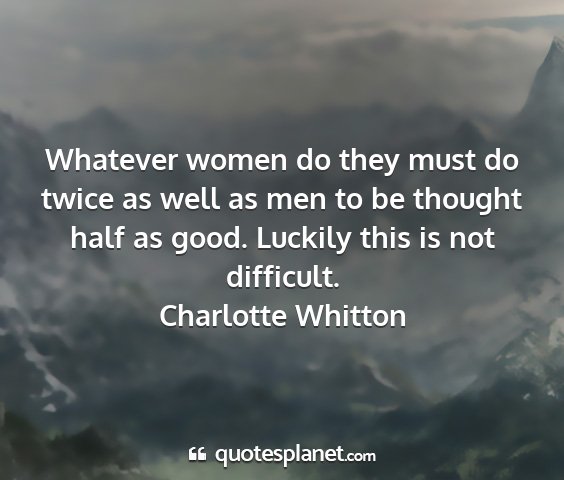 Whatever women do they must do twice as well as men to be thought half as good. Luckily this is not difficult.Charlotte Whitton
