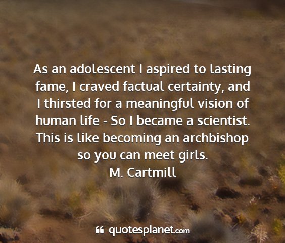 As an adolescent I aspired to lasting fame, I craved factual certainty, and I thirsted for a meaningful vision of human life - So I became a scientist. This is like becoming an archbishop so you can meet girls.M. Cartmill