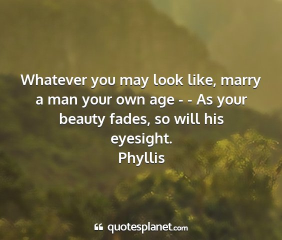 Whatever you may look like, marry a man your own age - - As your beauty fades, so will his eyesight.Phyllis