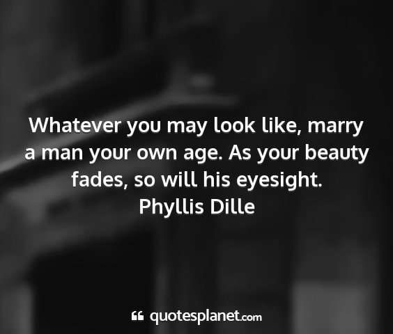 Whatever you may look like, marry a man your own age. As your beauty fades, so will his eyesight.Phyllis Dille