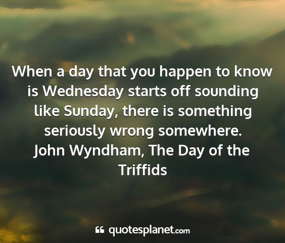 When a day that you happen to know is Wednesday starts off sounding like Sunday, there is something seriously wrong somewhere.John Wyndham, The Day of the Triffids