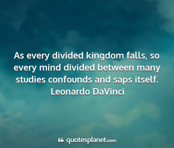 As every divided kingdom falls, so every mind divided between many studies confounds and saps itself.Leonardo DaVinci