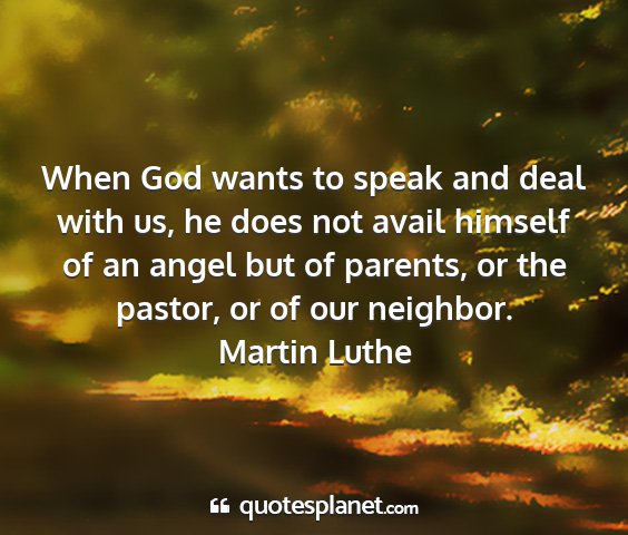 When God wants to speak and deal with us, he does not avail himself of an angel but of parents, or the pastor, or of our neighbor.Martin Luthe